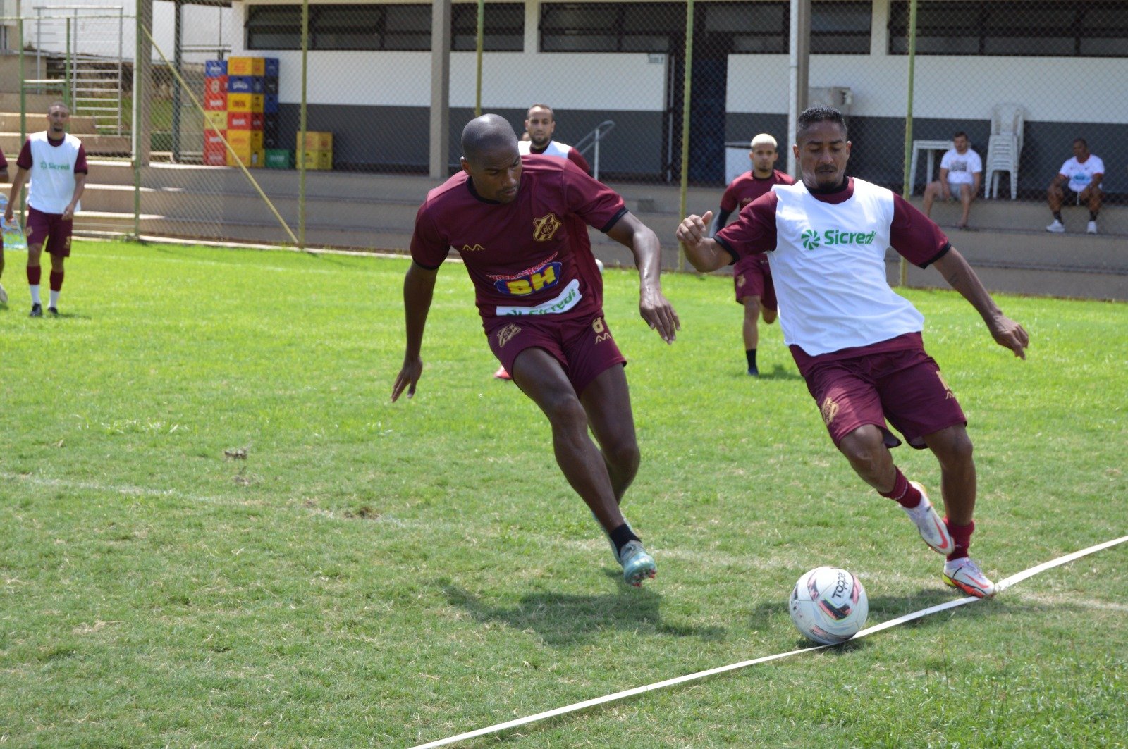 Ainda em trabalho de recuperação, os atletas do Democrata fizeram, nesta terça-feira (31), uma atividade em campo reduzido, no Clube Náutico. Antes da atividade, Paulinho Guará falou para o grupo sobre a importância de uma boa semana de trabalho para alcançar o objetivo, no sábado (04), na Arena, contra o Villa Nova.